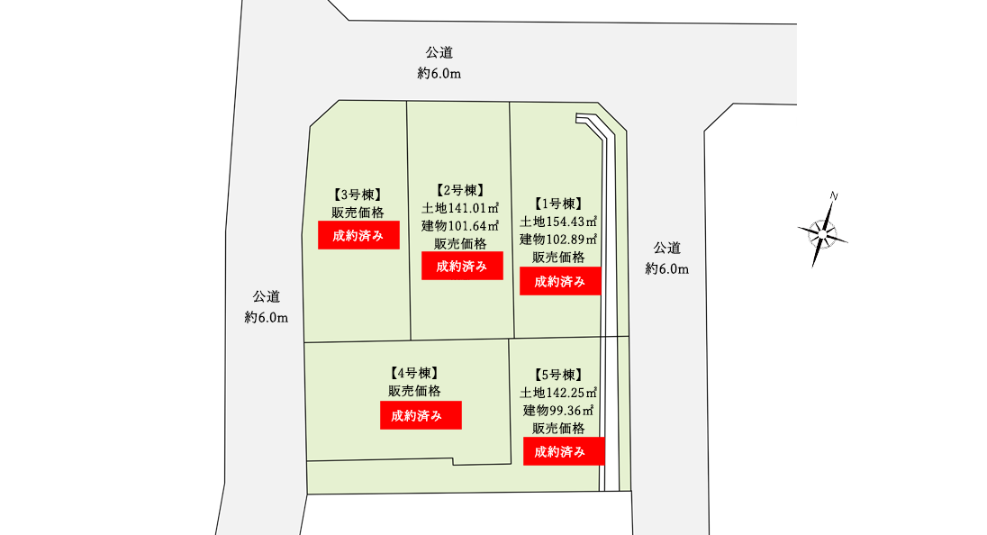 接面道路 西側公道/約6.0m・東側公道/約6.0m・北側公道/約6.0m
