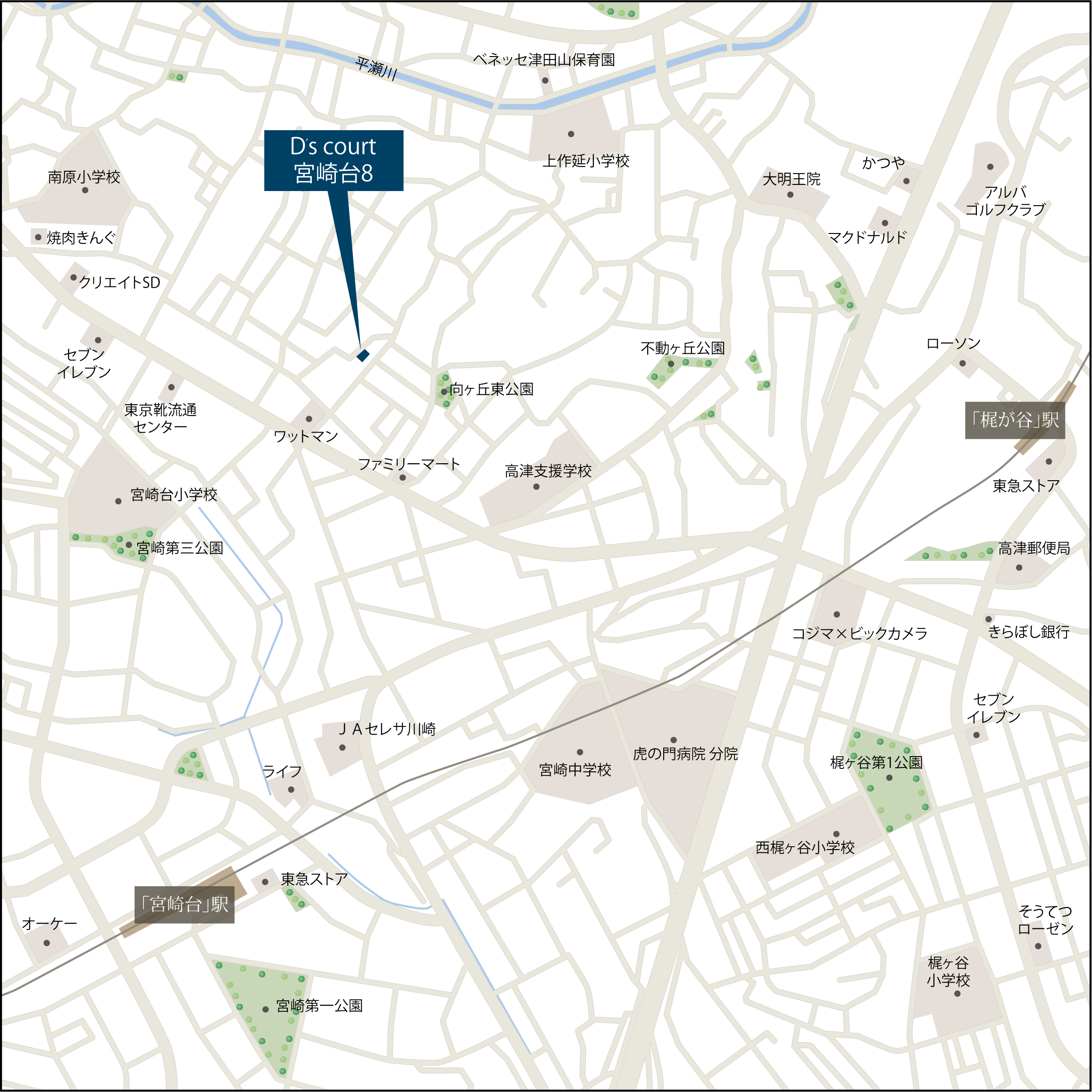 | 交通 | 東急田園都市線「宮崎台」駅 徒歩14分(約1115m) |