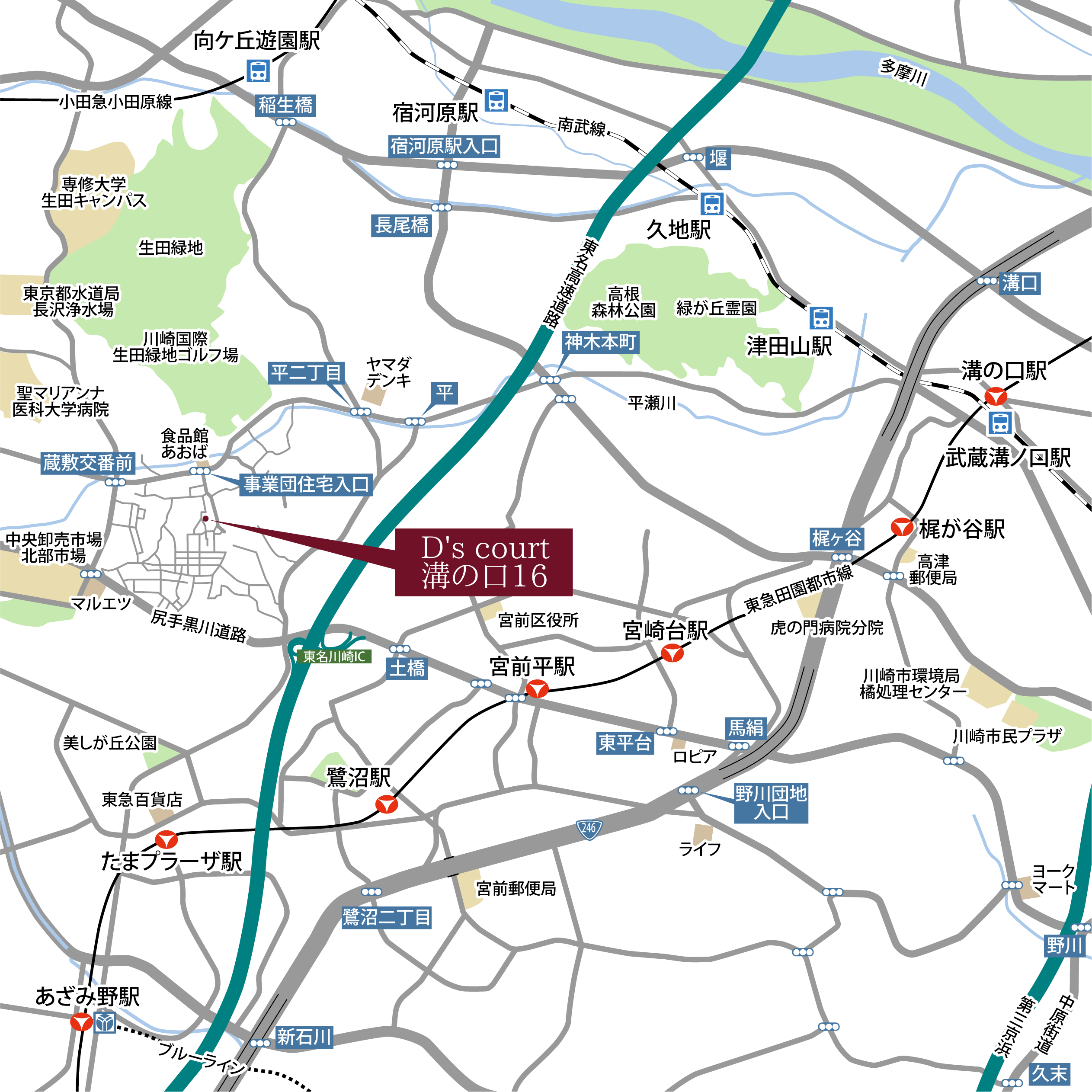 | 交通 | 東急田園都市線「溝の口」駅 バス乗車22分「菅生小学校入口」停 徒歩6分 |