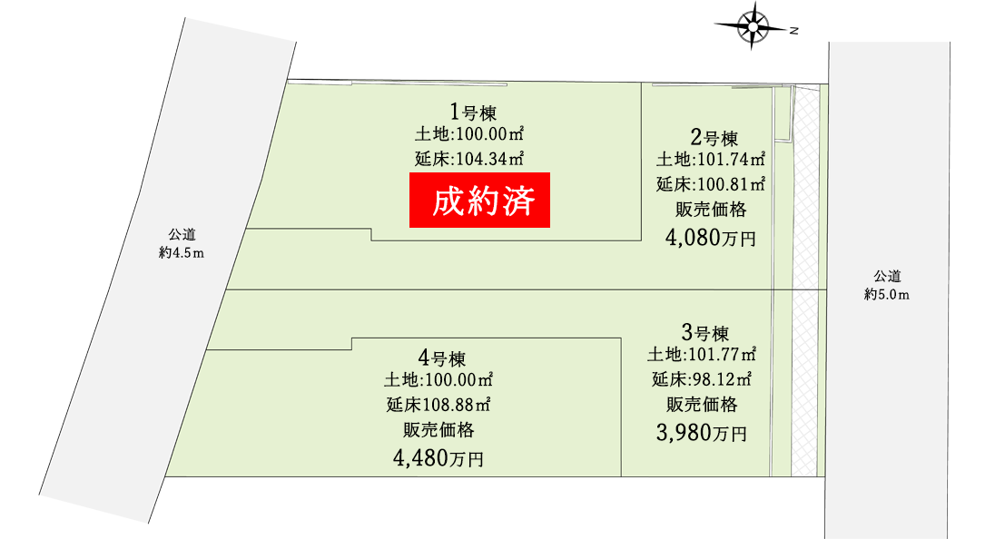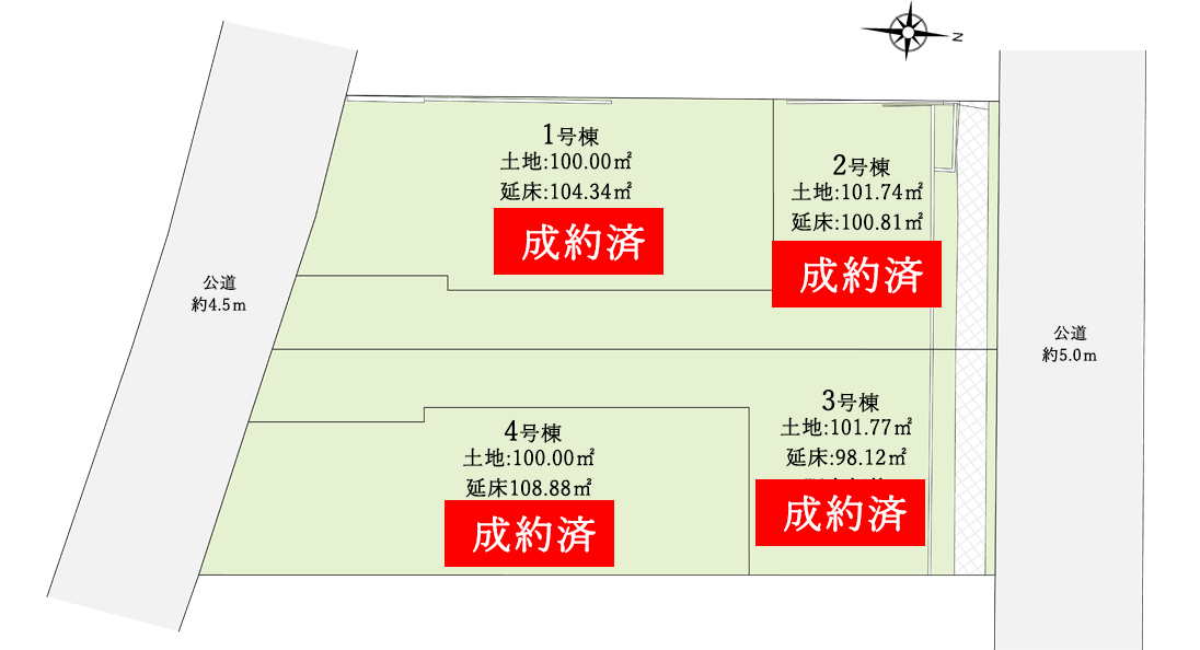 南側公道/約4.5m・北側公道/約5.0m |
