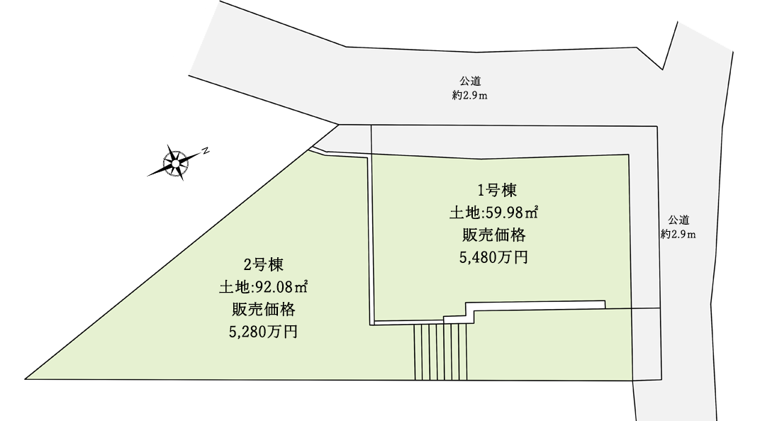 接面道路 北東側公道/約2.9m・北西側公道/約2.9m