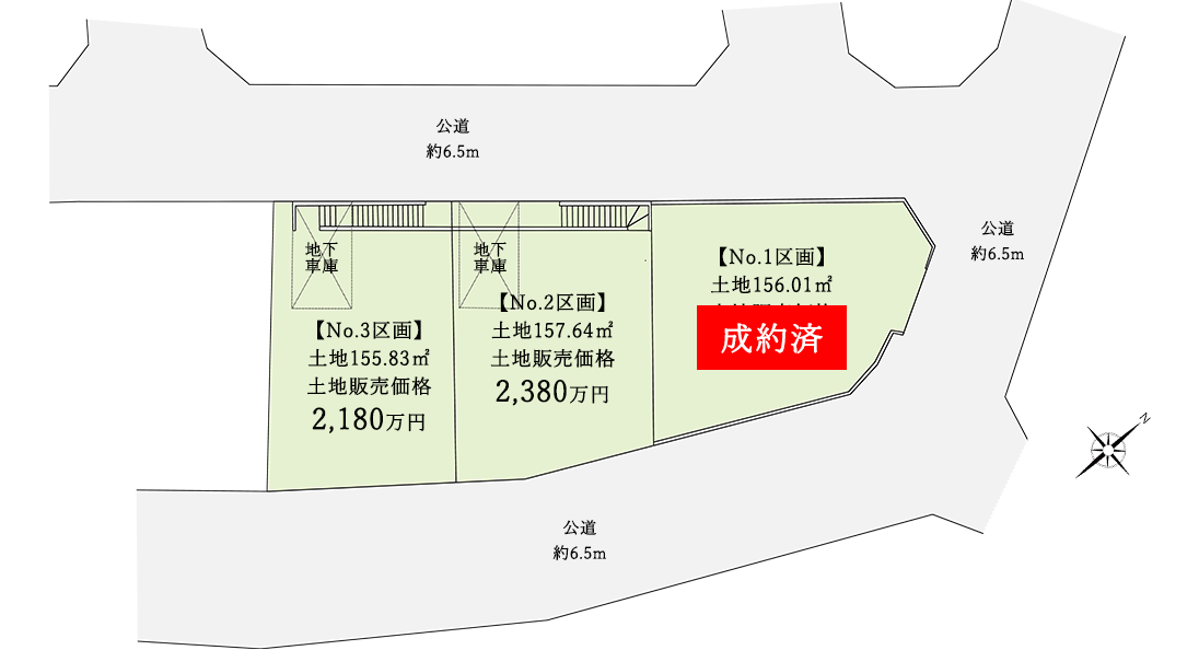 | 接面道路 | 北西側公道/約6.5m・東側公道/約6.5m~7.7m |