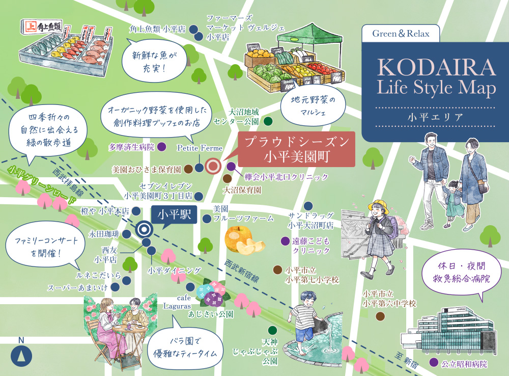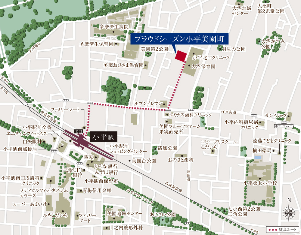 西武新宿線「小平」駅から「プラウドシーズン小平美園町」までのルート案内