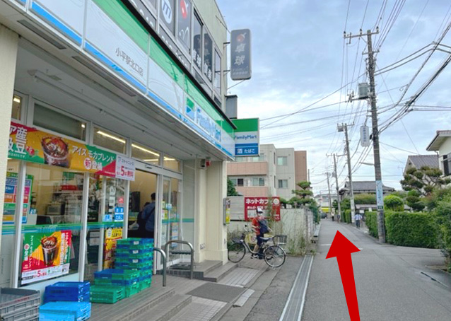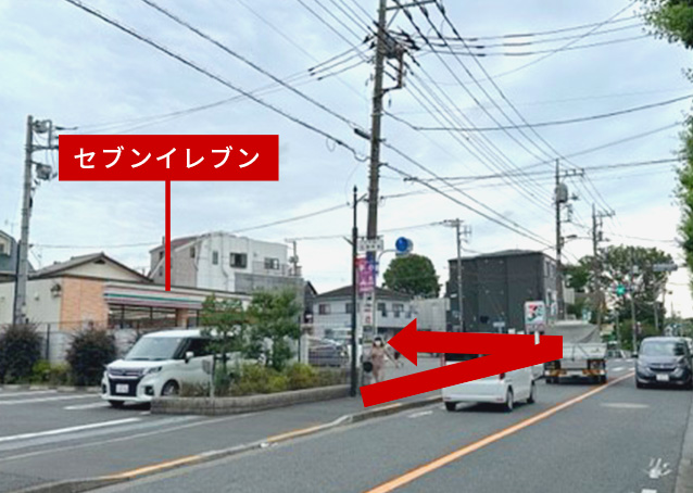 左側に「セブンイレブン」が見えたら、左に曲がります。