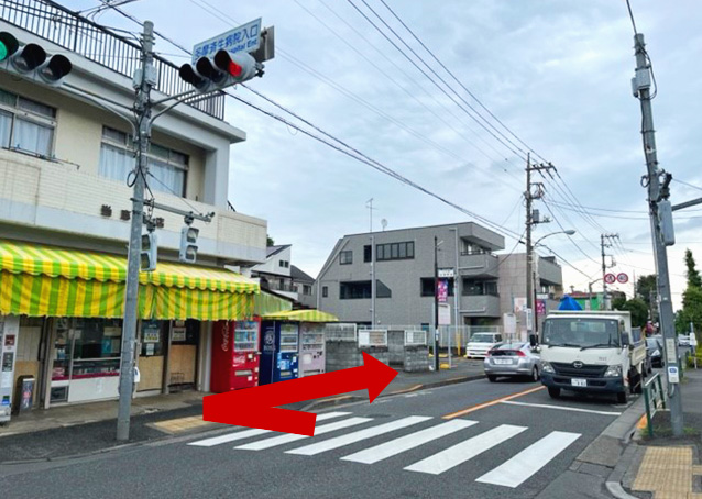「多摩済生病院入口」の横断歩道を渡り、右に直進します。