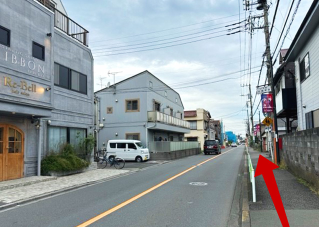 左に美容室「Re-Bell」そのまま直進します。(右側に歩道があります。)