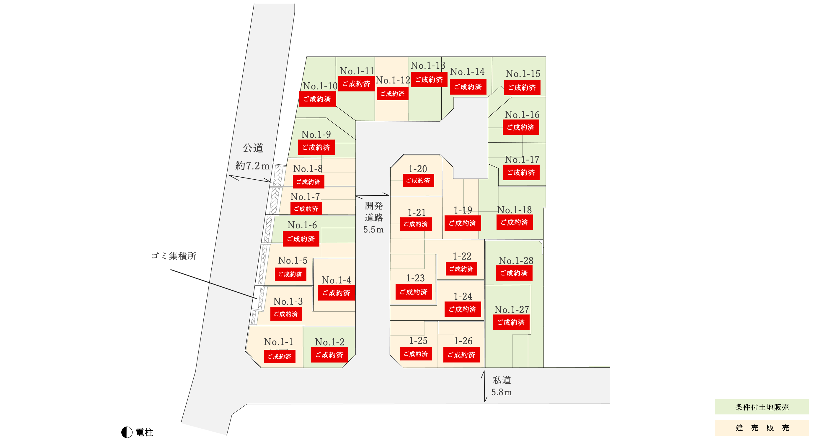 開発道路5.5mのゆとりある区画配置。
